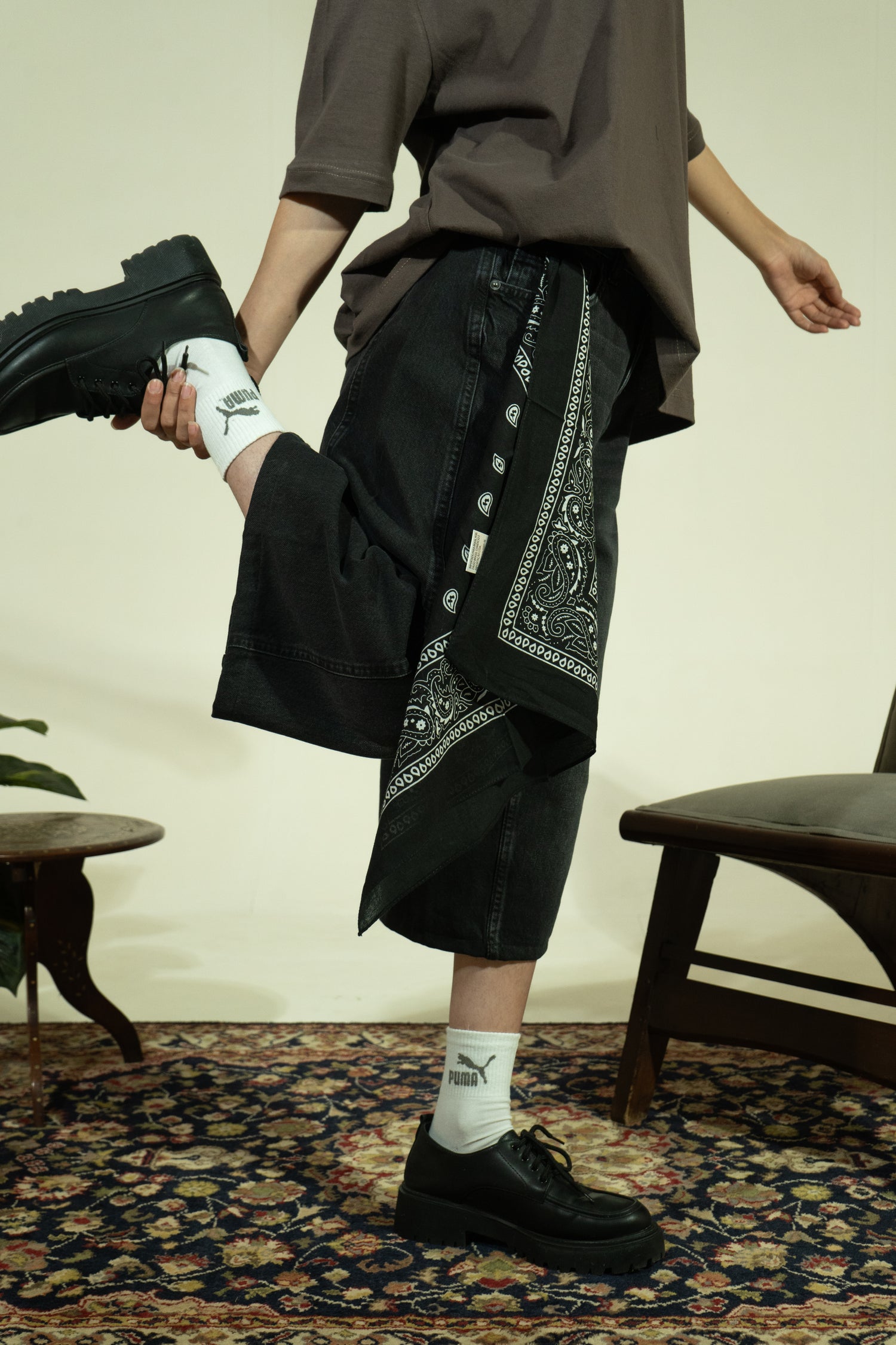 Dark Blue Straight Fit Raised Wool Denim Sweatpants (Unisex)